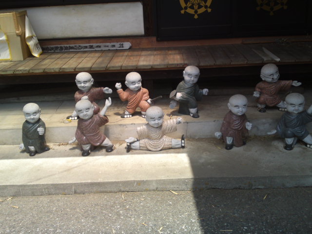 本堂前には、羅漢像と思われる小さな石像がありました。