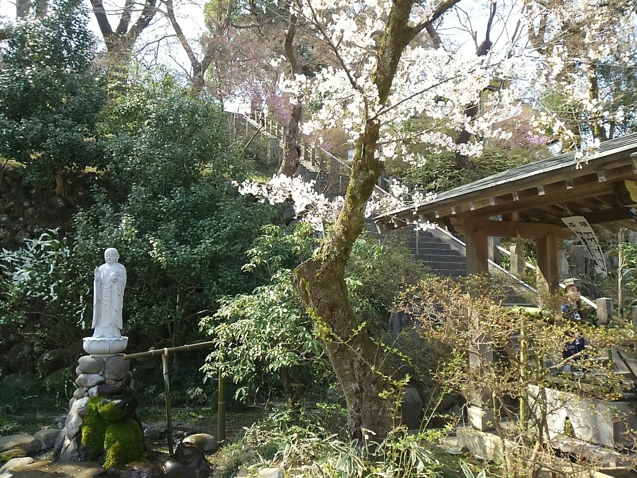 境内の桜は満開でした。3〜6月頃の境内は木々の緑が映え、しばらくは散策できます。