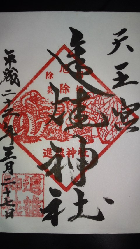 明治初年に神仏分離により、それまでの「天王宮」から雄大に進むを祈誓して大神様を社号とする「進雄神社」と改称され平成の御代に総檜、権現造の御社殿を新築造営すると共に神域を整厳しました。」